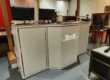 Ces vitrines sur mesure, sont composées d’un chassis en tôlerie (acier plié) avec 2 tiroirs sur glissières à billes. L’ensemble est habillé de verre trempé 6mm. La porte est équipée d’une serrure à barillet. Le logo du client a été découpé au laser et rétro-éclairé. La vitrine dispose d’un éclairage centrale afin d’illuminer tous les produits au travers des étagères en verre.